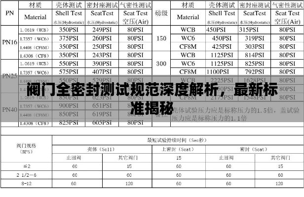 随着工业技术的不断进步和安全生产要求的日益严格,阀门全密封测试在保障工艺流程及系统安全中发挥着举足轻重的作用,本文将围绕“阀门全密封测试规范最新”这一主题,对阀门全密封测试的重要性、测试方法、测试流程以及规范更新等方面进行详细介绍。